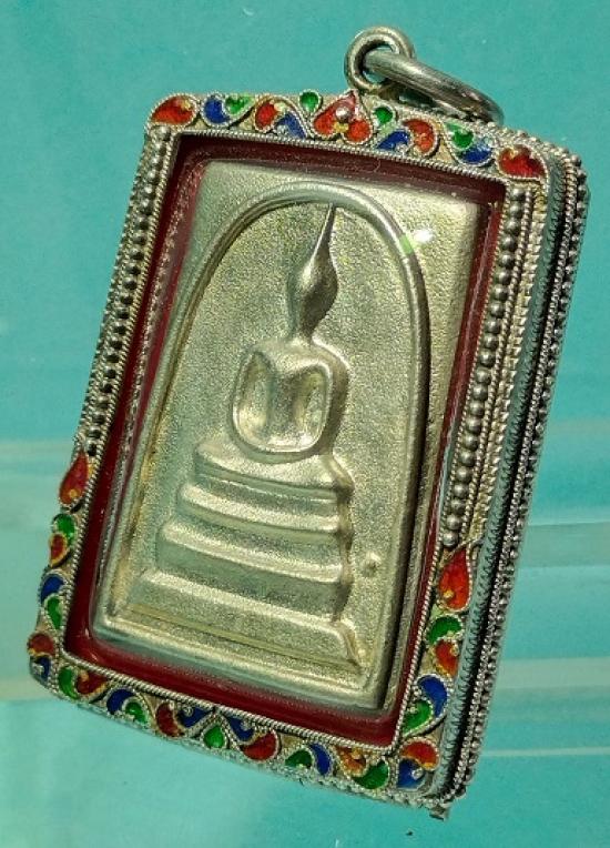 พระสมเด็จวัดระฆัง ด้านหลังสมเด็จฯ โต เนื้อเงิน โครงการใต้ร่มโพธิ์ทอง 2549 พร้อมเลี่ยม ตลับเงิน 925 พร้อมกล่องเดิม