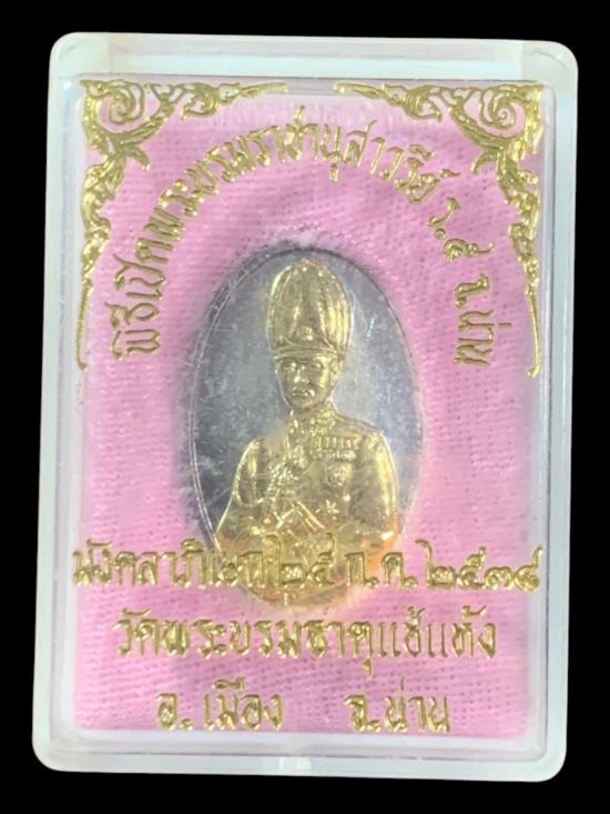 เหรียญ รัชกาลที่ 5 พิธีเปิดพระบรมราชานุสาวรีย์ จ.น่าน พิธีมังคลาภิเษกปี 2538 วัดพระบรมธาตุแช่แห้ง อำเภอเมือง จังห วัดน่าน เนื้อ 2 กษัตริย์ พร้อมกล่องครับ |