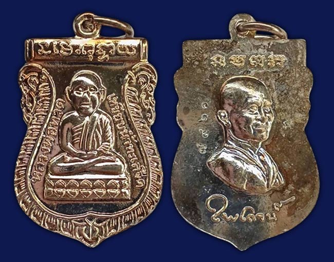 เหรียญเสมาหัวโต หลวงปู่ทวด วัดห้วยมงคล ทีเดียว 2 องค์(กะหลั่ยทอง+กะหลั่ยเงิน)