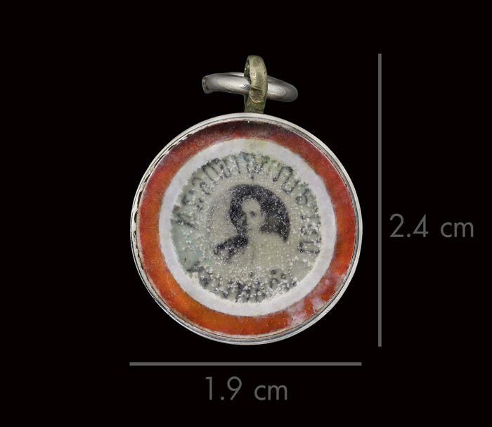 ล็อกเก็ตขอบแดง หลวงพ่อกัน วัดเขาแก้ว รุ้นที่ระลึก 6 รอบ เลี่ยมเดิมจากวัด สภาพยังสวยครับ ขนาดพระ ฐาน 1.9 cm สูง 2.4 cm(รวมห่วง) |