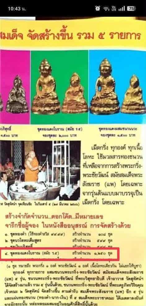 พระกริ่ง + พระชัยวัฒน์ (สมเด็จพระสังฆราชแพ) รุ่น 5 สมเด็จ วัดสุทัศน์เทพวนารามฯ ปี 2536 เนื้อทองแดงโบราณสมัยร.5 ออกวัดท่าราบ จ.ราชบุรี พร้อมกล่อง (( แดงวัดใจ 200 )) |