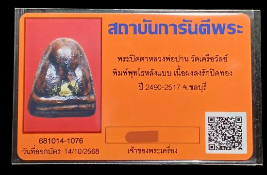 เคาะเดียวต่ำกว่าทุน...ปิดตาหลวงพ่อปาน วัดเครือวัลย์ ชลบุรี พิมพ์พุทโธหลังแบบ เนื้อผงลงรักแดงๆ ปิดทองเดิม ยุคต้น ปี 2490-2517 พระสวยครับ พร้อมบัตรรับรองจากทางเว็บ |