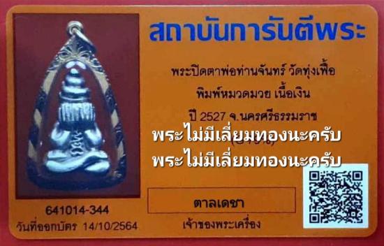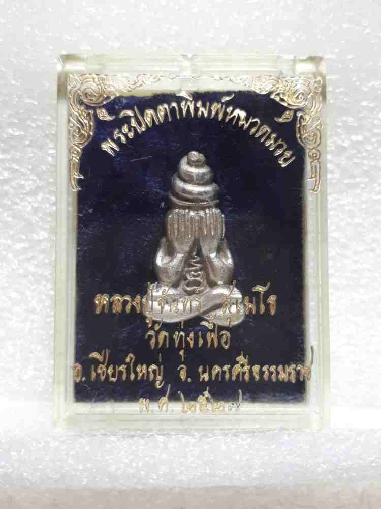 พระปิดตาหมวดมวย พ่อท่านจันทร์ วัดทุ่งเฟื้อ เนื้อเงิน สร้างน้อย99องค์ มีกล่องเดิมๆจากวัด สภาพสวยมาก มาพร้อมบัตรการันตีพระ |