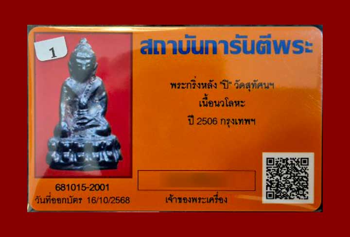 พระกริ่งหลังปิ วัดสุทัศน์ฯ ท่านเจ้าคุณเสงี่ยม ปี2506 หลวงปู่ดู่ วัดสะแก อธิษฐานจิต จารใต้ฐานกำกับ พร้อมบัตร |