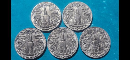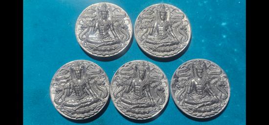 เหรียญบาตรน้ำมนต์ ขนาด 5.5 ซม. รุ่นโคตรเศรษฐียุค8 เนื้อแร่ พร้อมกล่องเดิม จำนวน 5 เหรียญครับ |