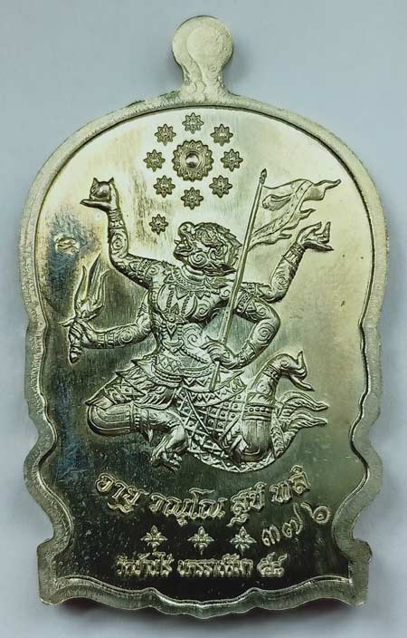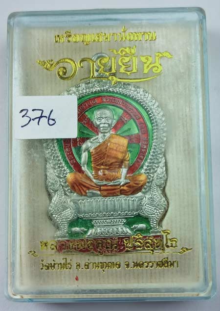 เหรียญนั่งพานอายุยืน (หลังหนุมาน รุ่นแรก) หลวงพ่อคูณ วัดบ้านไร่ เนื้ออาปาก้าลงยา3สี(แยกชุดพระบูชานวะหน้าตัก18นิ้ว) เบอร์ 376 พร้อมกล่องครับ