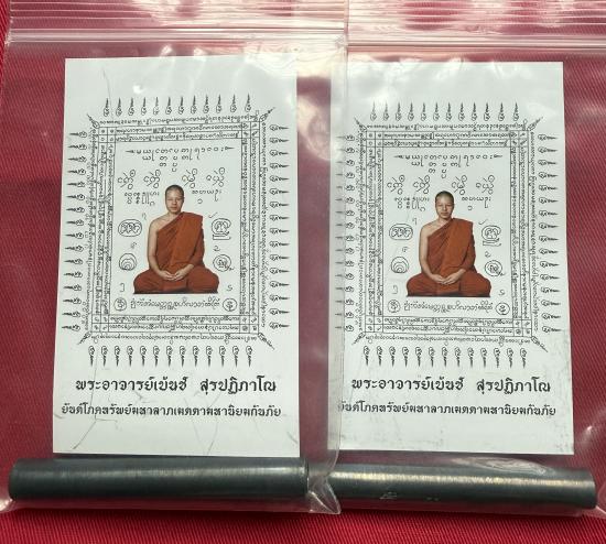 ตะกรุดกันปืนพระอาจารย์เบ้นซ์ วัดราชาธิวาส เนื้อตะกั่วจารมือยาว 2 นิ้วตอกโค้ด จำนวน 2 ดอก |
