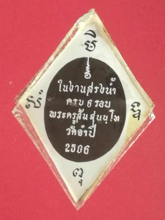 รูปถ่ายอัดกระจก ขนาดห้อยคอ หลวงพ่อส้ม วัดจำปี สุพรรณบุรี ปี ๒๕๐๖ ในงานสรงน้ำครบ ๖ รอบ |
