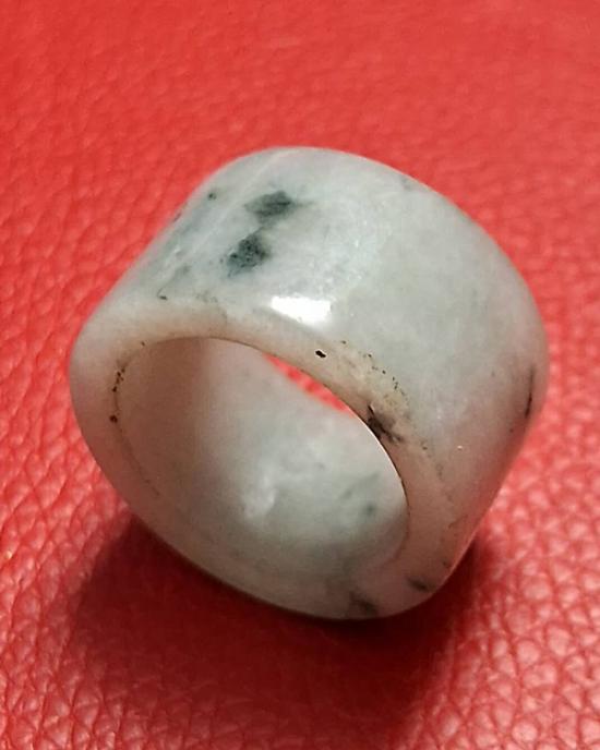 แหวนหยกทรงท่อ หยกพม่าแท้ 100 % (แสงส่องผ่าน) สีเขียวอ่อน ลวดลายธรรมชาติ สวยมากๆ เส้นผ่าศูนย์กลาง 1.9 ซม. หนา 1.4 ซม. หายาก (กท.16)