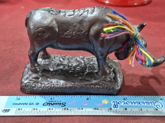 (เคาะเดียวแดง) ควายธนู รุ่น คงทอง คะนองฤทธิ์ ครูบาคำฝั้น วัด กอโชค สันป่าตอง เชียงใหม่ เนื้อทองแดง นน.ดี |
