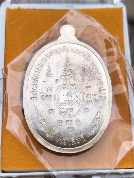 เหรียญวาจาสิทธิ์ พ่อท่านท้วง สำนักสงฆ์คลองแคว จ.นครศรีธรรมราช ปี 2557 เนื้อผิวประกายเงินลงยาแดง