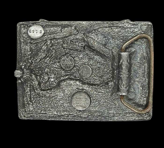 ผลิตโดย Bergamot Brass Works ซึ่งเป็นผู้ผลิตหัวเข็มขัดเชิงพาณิชย์รายแรกๆ ที่เข้าสู่ตลาดในช่วงต้นยุค 70