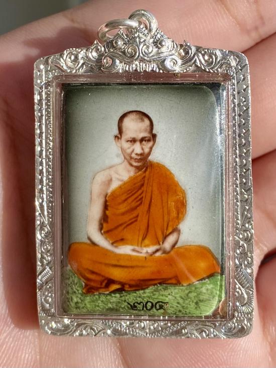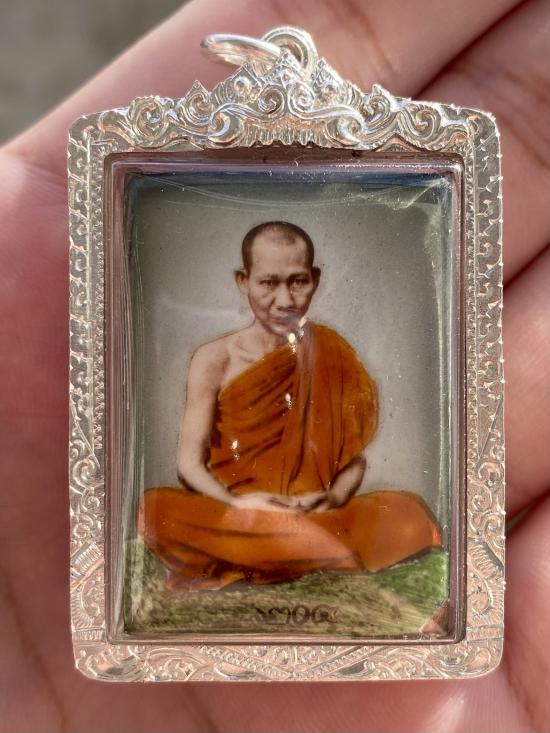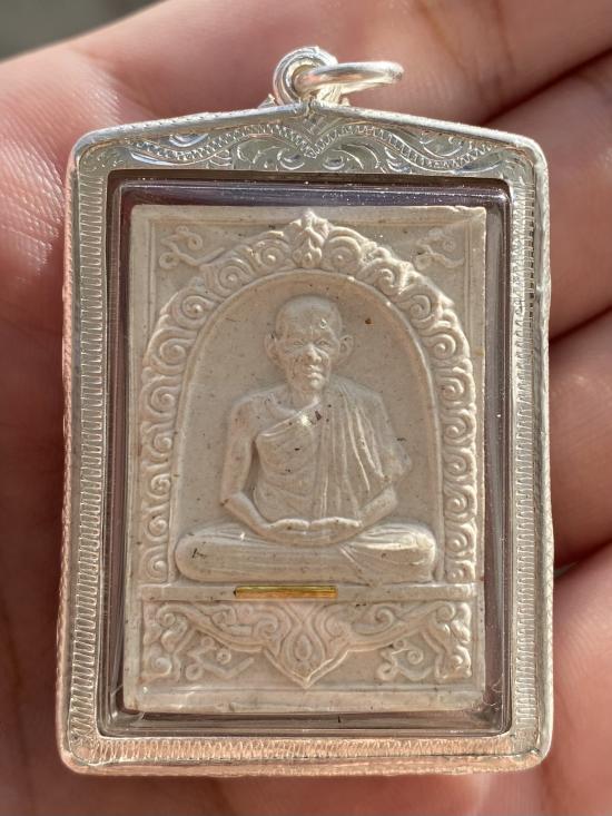 ล็อกเก็ต หลวงพ่อเกษม เข้ามโก รุ่น มงคลลาภ หลังผงข้าวก้นบาตร ตะกรุดทองคำ ปี2535 (มีบิ่นมุนล่างด้านขวด) พร้อมเลี่ยมเงิน