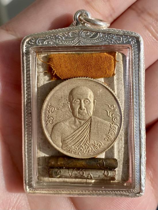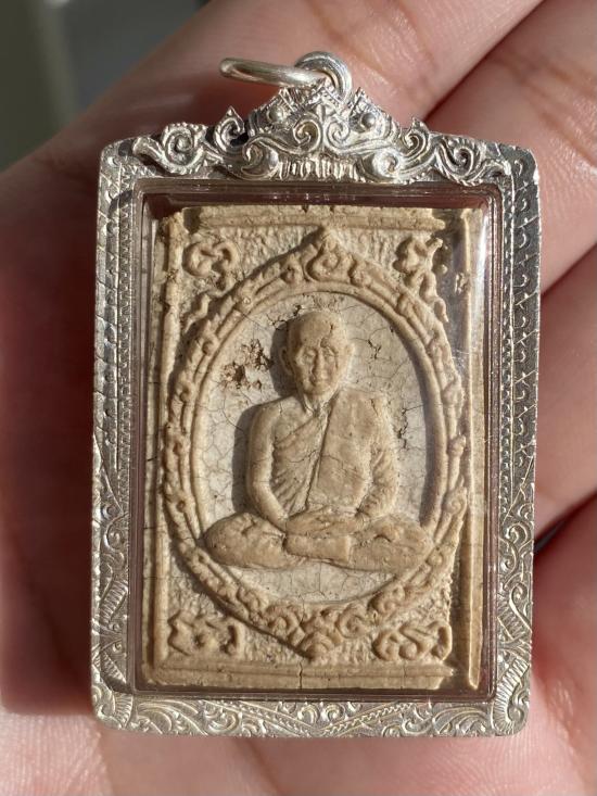 พระผงรูปเหมือนหลวงปู่สิม พุทธาจาโร หลังยันต์ห้า รุ่นเมตตา วัดถ้ำผาปล่อง จ.เชียงใหม่ พ.ศ. 2517 (ด้านหลังเจ้าของเดิมนำเหรียญและตะกรุดจีวรติด)พร้อมเลี่ยมกรอบเงิน