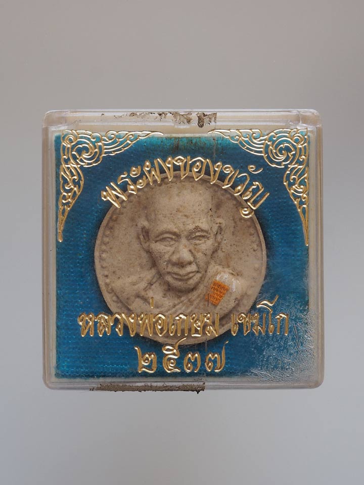 เคาะแรกแดง 140- พระผงของขวัญ หลวงพ่อเกษม เขมโก สุสานไตรลักษณ์ จ.ลำปาง ปี 2537 ติดจีวร ฝังตะกรุด เม็ดพลอย พร้อมกล่องเดิมครับ