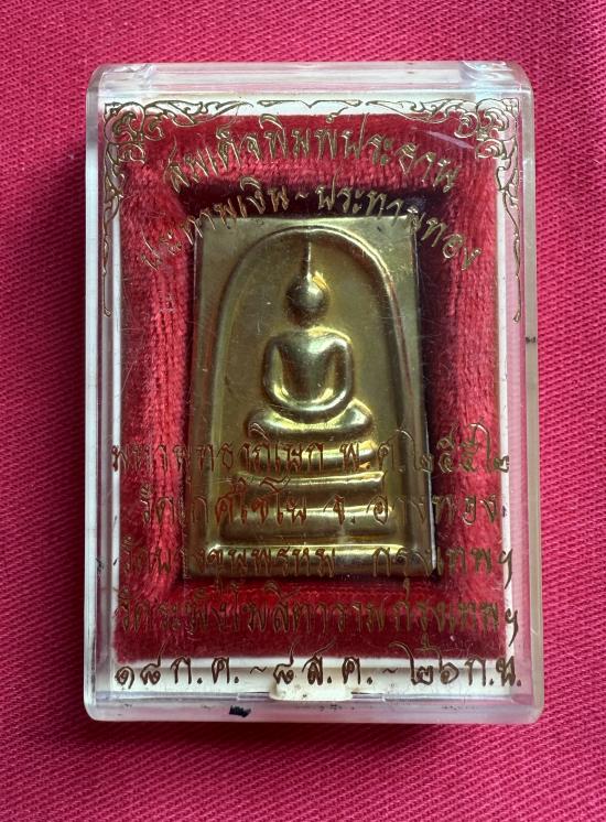 สมเด็จวัดระฆังพิมพ์พระประธาน มีเงิน - มีทอง พิมพ์อกร่อง หน้ากากทองเหลือง หลังแผ่นหัวใจพระคาถาชินบัญชร เนื้อทองเหลือง วัดอินทรวิหาร ปี2552
