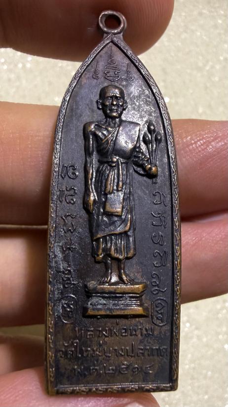 เหรียญถือดอกบัว หลวงพ่อนาม วัดใหม่บางปลากด สมุทรปราการ ปี2514 |
