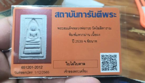พระสมเด็จแหวกม่าน ย้อนยุค ปี 39 หลวงพ่อกวย วัดโฆสิตาราม หลังมีตราปั๊ม ไม่มีกล่อง พร้อมบัตร G คะ