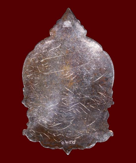 เหรียญนั่งพาน เนื้อนวะหน้ากากเงิน ด้านหลังเป็นยันต์ จารมือ พระครูปลัดวิชัย วัดสันติวิหาร สระบุรี เลข 1258 แดงเคาะแรก |