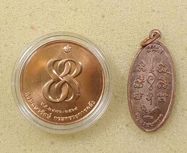 เหรียญพระคลัง ในพระคลังมหาสมบัติ 88 ปี กรมธนารักษ์ + เหรียญพระพุทธสัมฤทธิ์รุ่งโรจน์ เทพประทานพร วัดสุขกร สมุทรปราการ ปี56 |