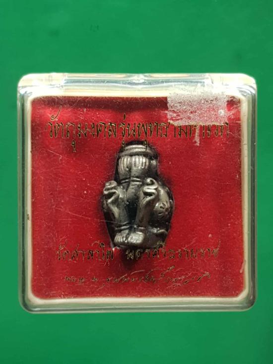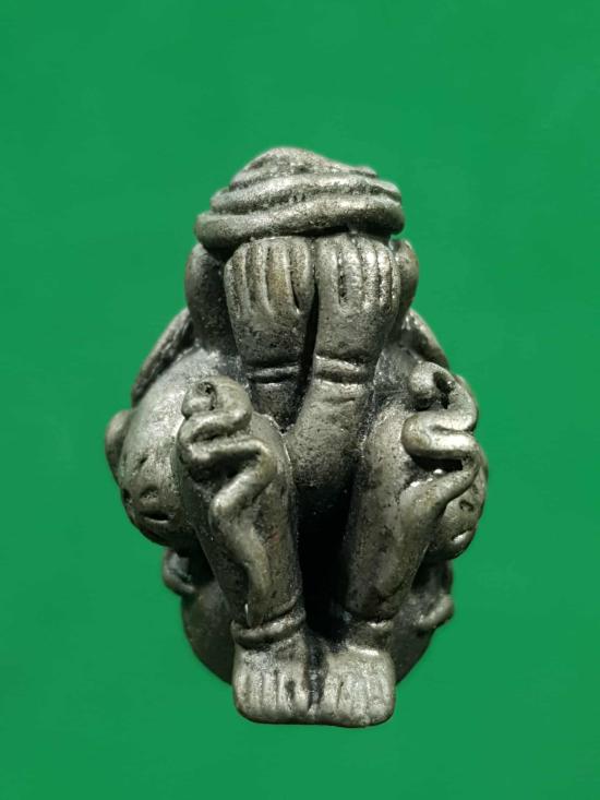 พระปิดตาสอดเข่า พุทธามหาเวท วัดศาลาไพ เนื้อเงินผิวโบราณ |