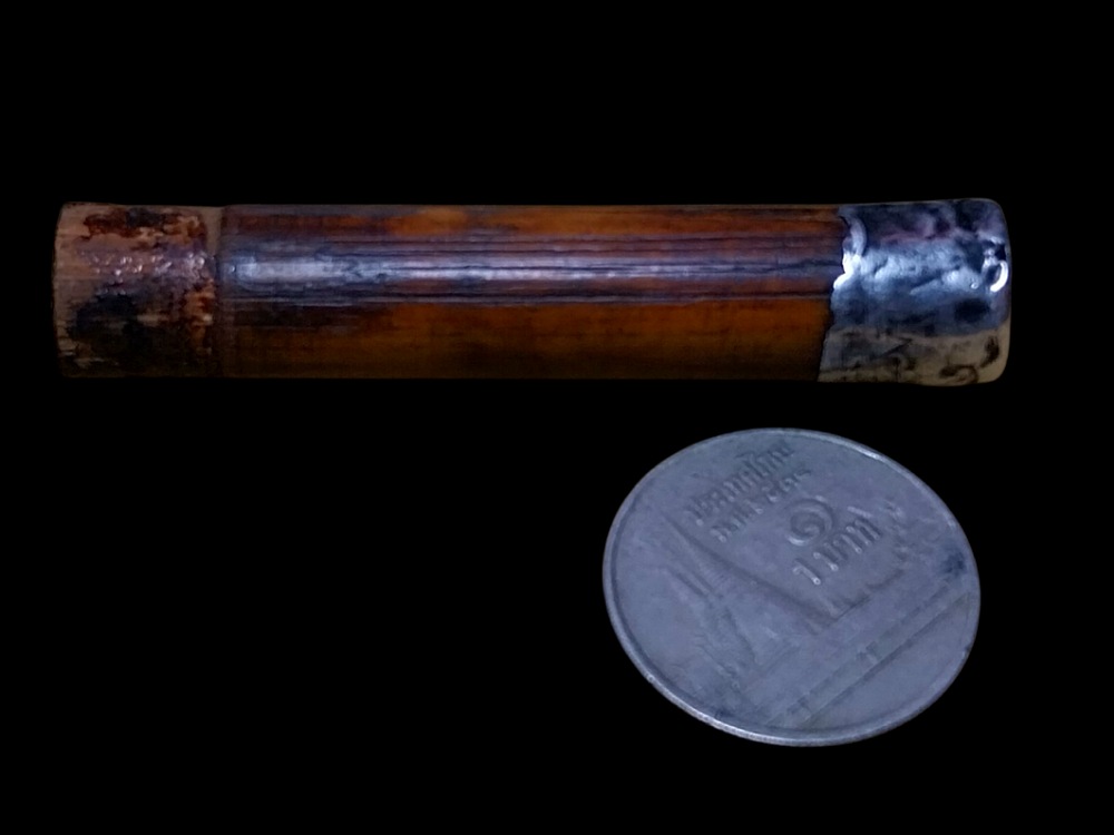 ตระกรุดไม่เก่าปลายหุ้มเงิน แท้เก่าไม่ทราบที่ วัดใจที่ค้อน |