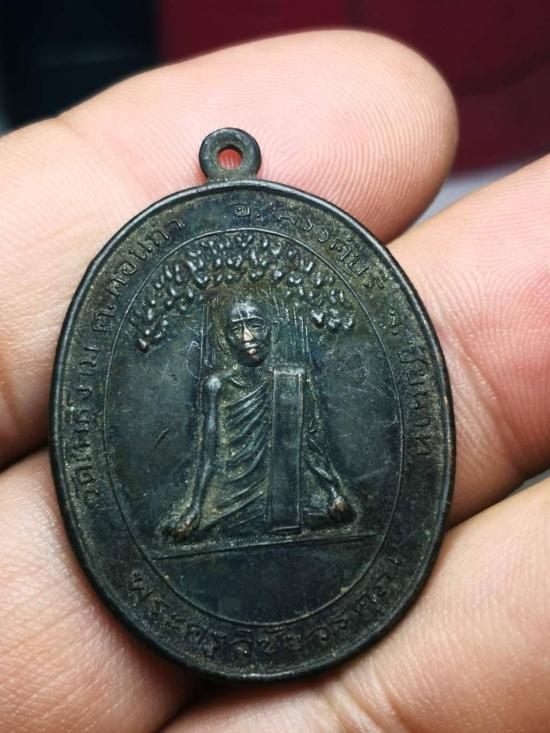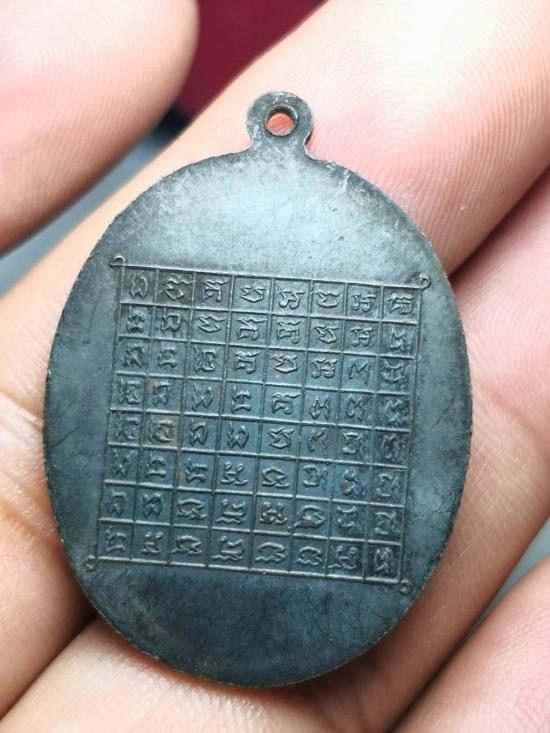 เหรียญหลวงพ่อป่วนวัดโพธิ์งาม จังหวัดชัยนาท หลังยันต์ค่ายกล เนื้อทองแดงรมดำสภาพตามรูปราคาเบาๆ |