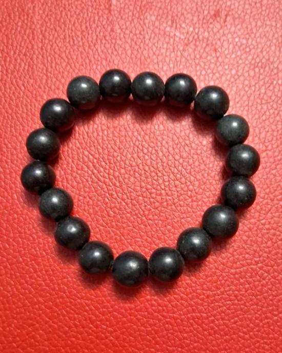 สร้อยประคำข้อมือหยกดำ หยกพม่าแท้ 100 % ขนาด 12 มิล (18 เม็ด) ร้อยด้วยเอ็นยืด ขนาดฟรีไซด์ (กท.52)