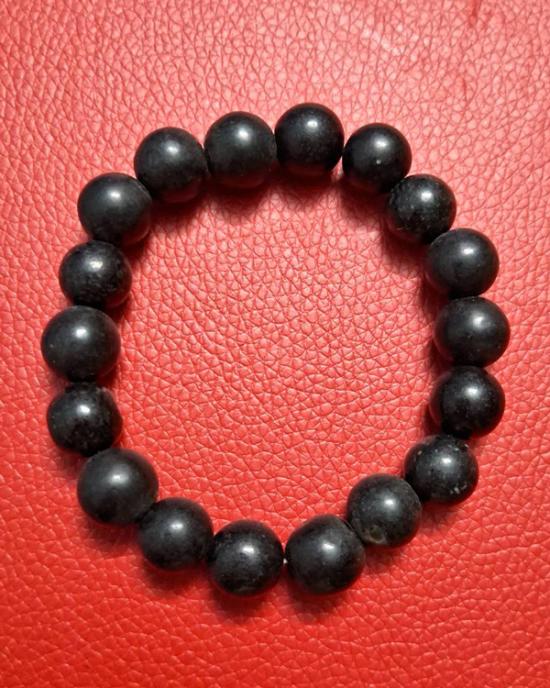 สร้อยประคำข้อมือหยกดำ หยกพม่าแท้ 100 % ขนาด 12 มิล (18 เม็ด) ร้อยด้วยเอ็นยืด ขนาดฟรีไซด์ (กท.52) |