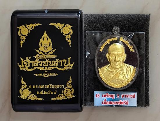 เหรียญ2อาจารย์ หลวงปู่ทวด-หลวงปู่ดู่ รุ่นเจ้าสัวพันล้าน (บอย ท่าพระจันทร์) เนื้อสองกษัตริย์ โค๊ตเลข ๒๔๑๐ พร้อมกล่องเดิม |