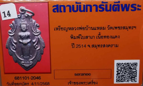 เหรียญหลวงพ่อวัดบ้านแหลม วัดเพชรสมุทรฯ เนื้อทองแดง ห่วงเดิม ปี2514 จ.สมุทรสงคราม + บัตร G-pra สภาพสวยเดิมค่ะ สภาพตามรูปทุกประการค่ะ