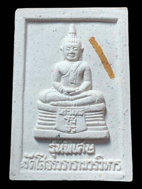 พระพุทธโสธรเนื้อผง หลังสมเด็จพระเจ้าตากสินมหาราช พิมพ์สี่เหลี่ยมฝังตะกรุดทองคำ ปี 2538 สภาพสวยเดิม พร้อมกล่อง |