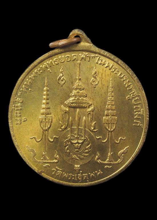 ด้านหลัง เป็นตราสัญลักษณ์ "มูลนิธิพระพุทธยอดฟ้า" ที่ "พระบาทสมเด็จพระพุทธยอดฟ้าจุฬาโลกมหาราช" ทรงมี พระมหากรุณาธิคุณพระราชทานเป็นรูป "พระมหาพิชัยมงกุฎ" ครอบตา "พระมหาจักรี" มีอักษรความว่า "วัดพระเชตุพน