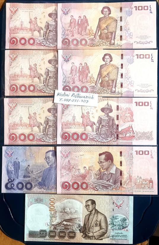 ธนบัตร 100, 500 และ 1,000 บาท ร.9 ผ่านใช้น้อย หมวด S ทุกใบ