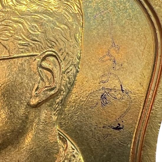 เหรียญระฆังคว่ำ ครบ 5 รอบ ในหลวง ร.9 ปี2530 มีรอยจารหลวงพ่อหยอด |