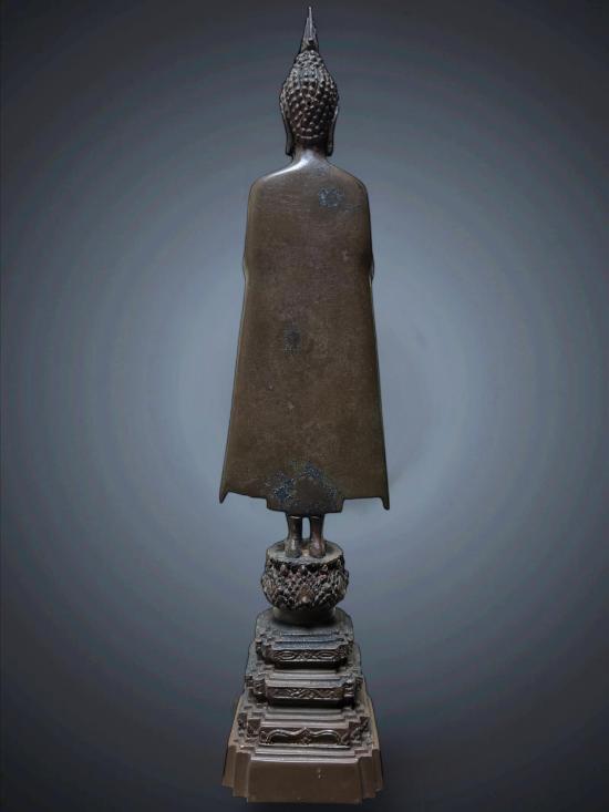 พระบูชาหลวงพ่อบ้านแหลม บาตรถอดได้ ไม่ทราบปเนื้อทองเหลือง ผิวหิ้งเก่าสูง 11.5 นิ้ว