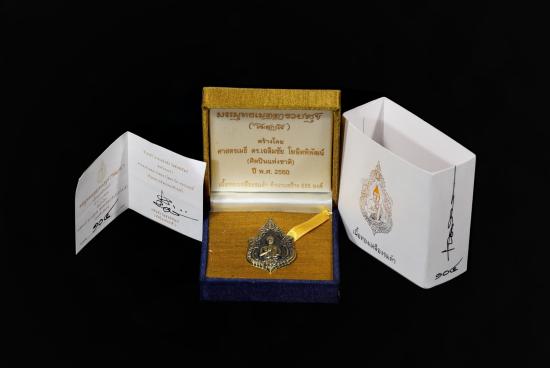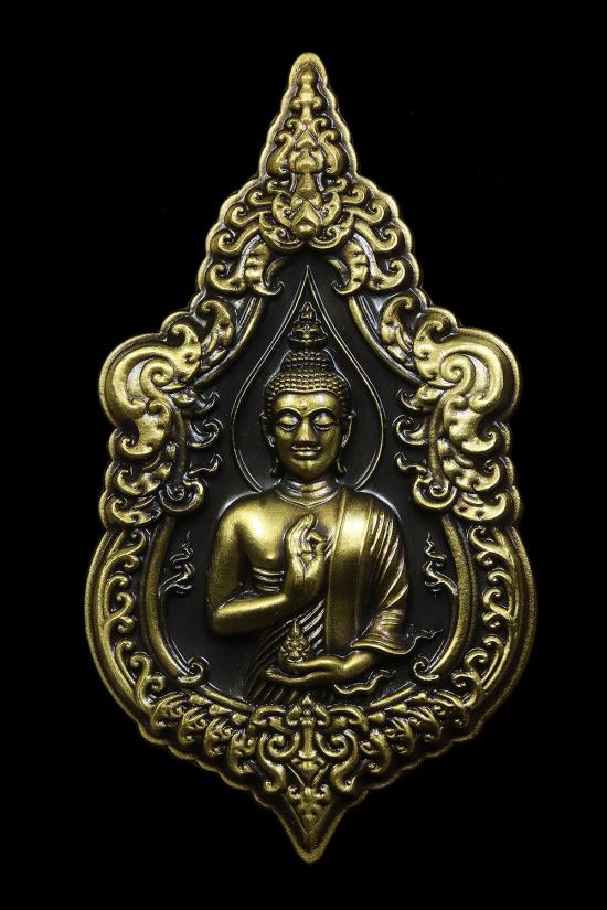 เหรียญพระพุทธเมตตารวย สุข (โฆสกาโร) เนื้อทองเหลืองรมดำ หมายเลข 104
