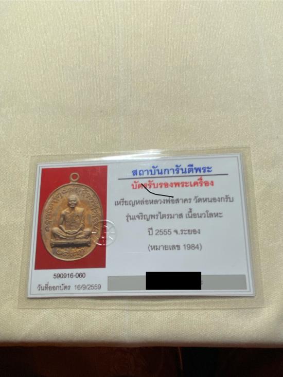 เหรียญหล่อ ลพ.สาคร วัดหนองกรับ รุ่นเจริญพรไตรมาส เนื้อนวโลหะ ปี2555 ตอกโค้ดสังฆาฏิ เลข1984 พร้อมกล่องเดิมและบัตรรับรองฯ โอนเงินแล้วแจ้งรายละเอียดการโอนทาง Mailbox ของเวปจี ได้รับแจ้งว่าโอนเงินแล้วจะส่งพระภายใน 3 วันทำการ