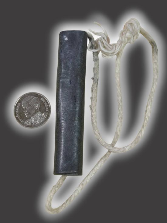 A3316.วัดใจ ตะกรุดเนื้อตะกั่วเก่า ไม่ทราบที่ ม้วนหนยาๆ เคาะเดียวเเดง |