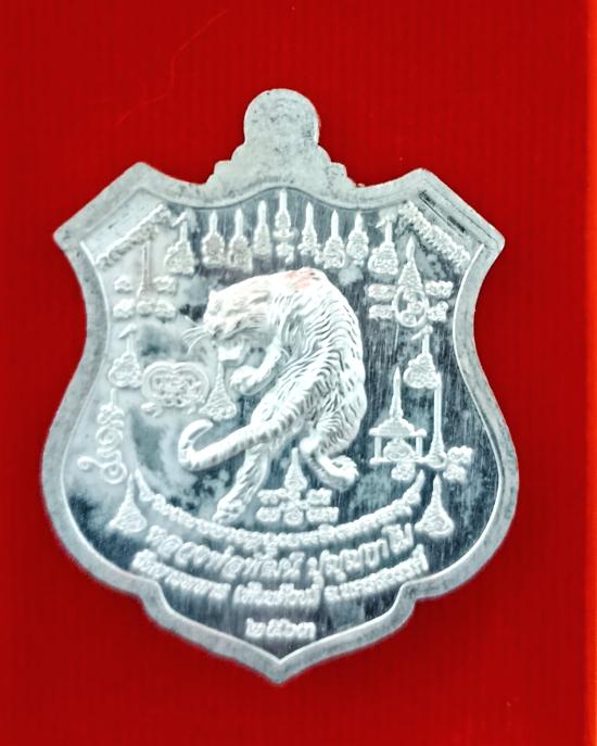 หลวงพ่อพัฒน์ รุ่นพยัคฆ์เจ้าพระยา เนื้อเงินบริสุทธิ์ พิเศษฝังพลอยเขียว NO.๗๐ พระรุ่นดีพิธีใหญ่