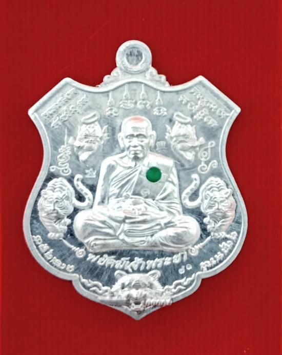 หลวงพ่อพัฒน์ รุ่นพยัคฆ์เจ้าพระยา เนื้อเงินบริสุทธิ์ พิเศษฝังพลอยเขียว NO.๗๐