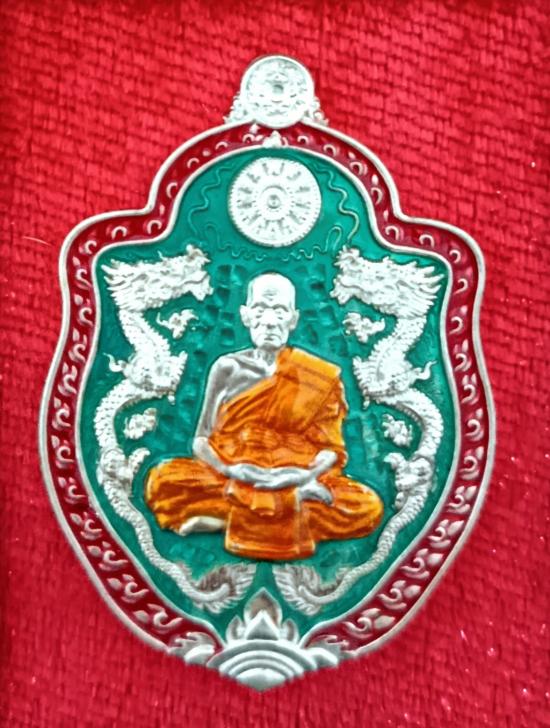หลวงพ่อพัฒน์ เหรียญมังกร รุ่นเจ้าขุมทรัพย์ เนื้อเงินบริสุทธิ์ ลงยาเขียวขอบแดง NO.๘๘