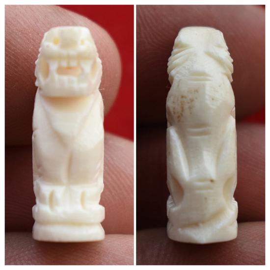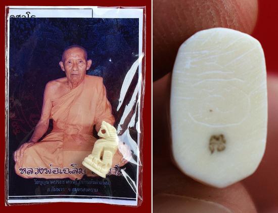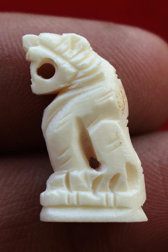พญาเสือเจ้าพยัคฆ์ตัวจ่าฝูง (มหาอำนาจ มหาปราบ) เนื้อกระดูกแกะ ใต้ฐานหลวงปู่จารยันต์กำกับไว้ทุกตัว สร้าง 189 ตัว ปี 2551 หลวงปู่เฉลิม วัดบุญนาคประชาสรรค์ จ.สมุทรสงคราม พร้อมซองรูปใบฝอยเดิมจากวัด สภาพพระตามรูปที่ลงทุกประการ (ขนาดประมาณ 2.4 x 1.2 ซม.)