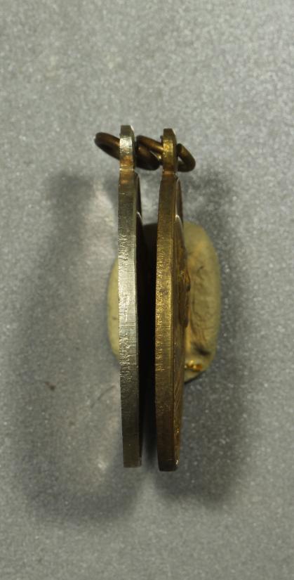 ลักษณะของเหรียญรูปไข่ มีขอบและหูห่วง