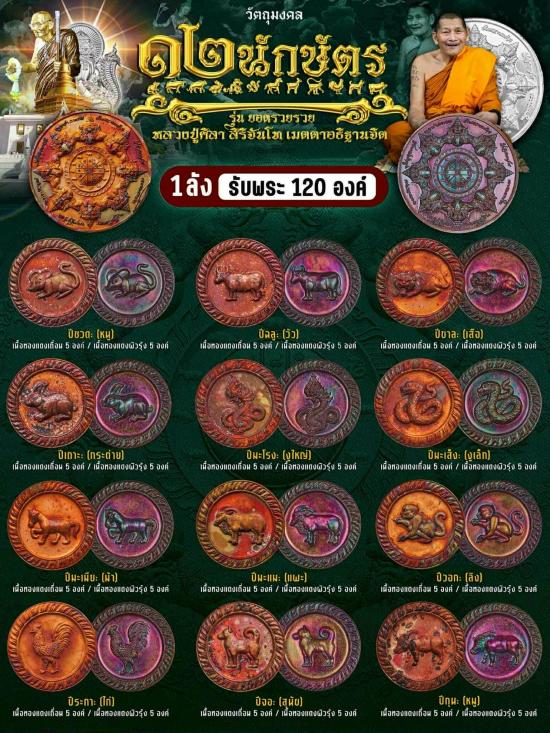 วัดใจ เหรียญ12 นักษัตร หลวงปู่ศิลา เมตตาอธิษฐานจิต เนื้อทองแดงเถื่อน No.1436 ปี2568 |