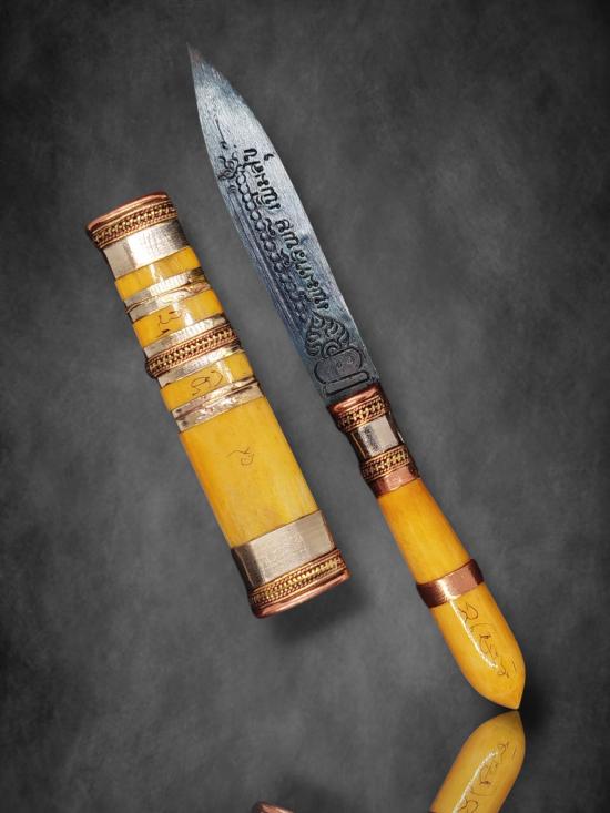มีดหมอปากกา 2.5 นิ้ว ตอกโค๊ต จารด้าม ปลอกกระดูกช้าง เพิ่มทรัพย์ เพิ่มสุข เสาร์5 ปี 2553 ซองเดิม หลวงปู่หงษ์ วัดเพชรบุรี สุรินทร์ |