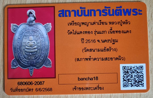 รายละเอียด เหรียญพญาเต่าเรือนหลวงปู่หลิว รุ่นแรก ปี2516 (3เดือย2แตก) บล็อคนิยมสุด+บัตรรับรอง