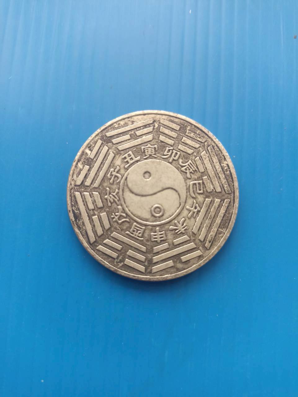 เหรียญในภาพมีตัวอักษรจีน "亥豬" (hài zhū) ซึ่งแปลว่า "หมู" คนจีนนิยมเอาเหรียญนี้เก็บไว้ที่ใส่สตางค์ เช่นตู้เชฟ กระเป๋าสตางค์ ที่เก็บเงิน เป็นต้น