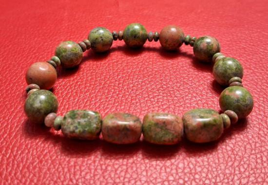 กำไลข้อมือประคำหินยูนาไคต์ (Unakite) แท้ หรือ หินถูกหวย ร้อยด้วยเอ็นยืด ขนาดฟรีไซด์ (กท.21) |