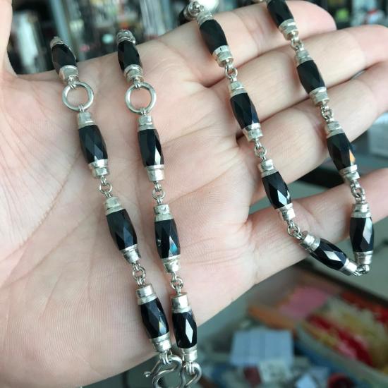 งานสร้อยคอนิลแท้เงินแท้ชุบทองคำขาว สวยมาก ราคาเบาสบายเป๋าตังค์คุณลูกค้าแน่นอน มีเม็ดนิล 20 เม็ด |